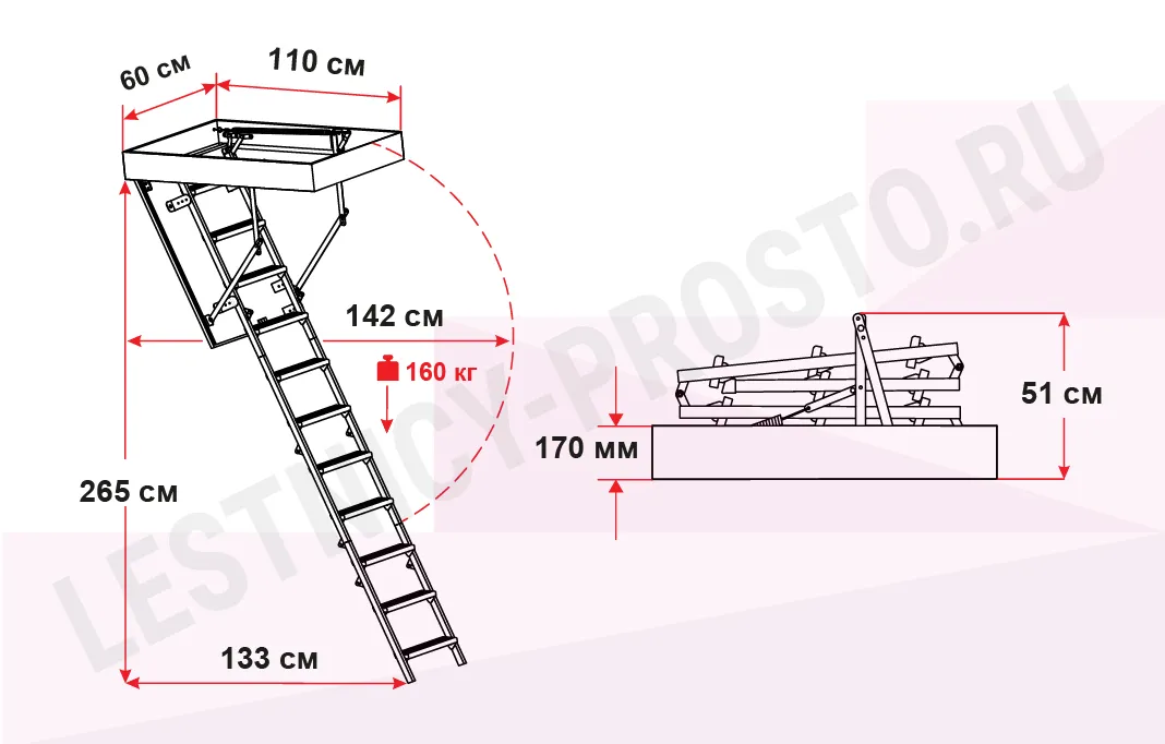 Чердачная лестница OMAN MINI POLAR 60×110 см, h-265 см