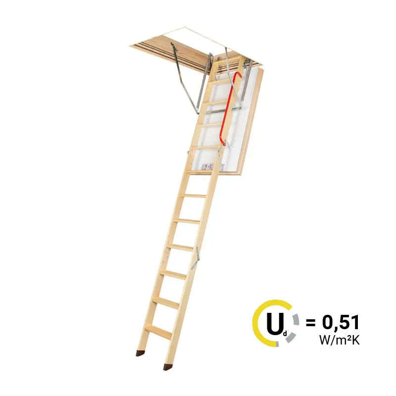 Лестница предназначена к установке в помещениях с высотой потолка 320 см, дополнительная секция позволяет увеличить высоту лестницы.