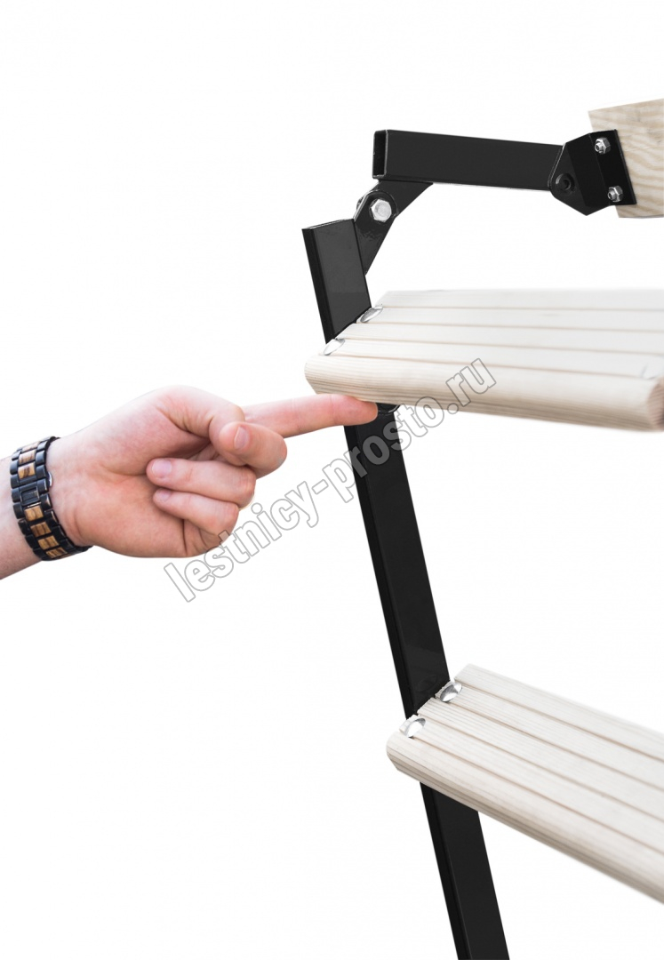 Ступени лестницы имеют антискользящие насечки и закреплены в столярное соединение «ласточкин хвост»