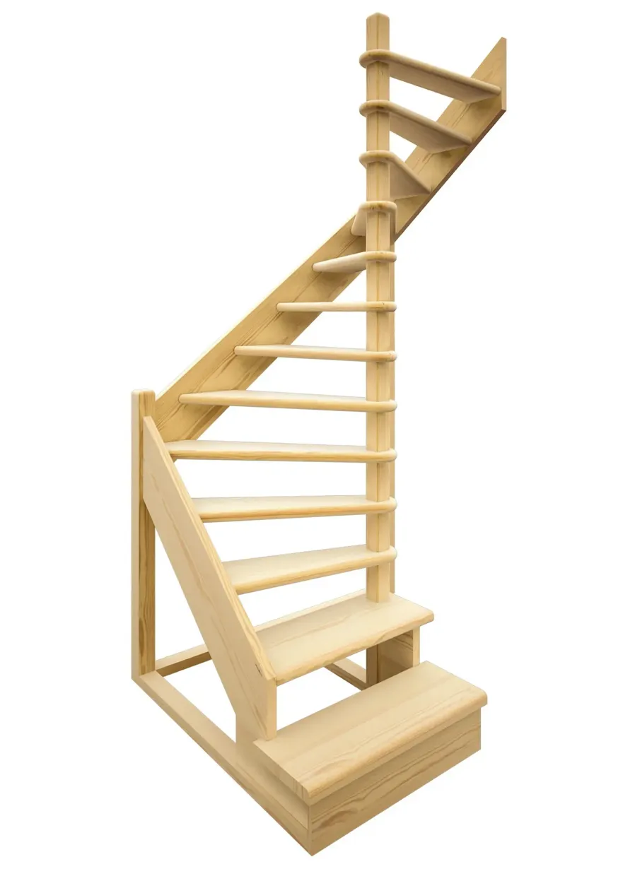 Лестница выполнена из древесины хвойных пород 8 % влажности.
