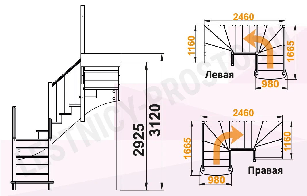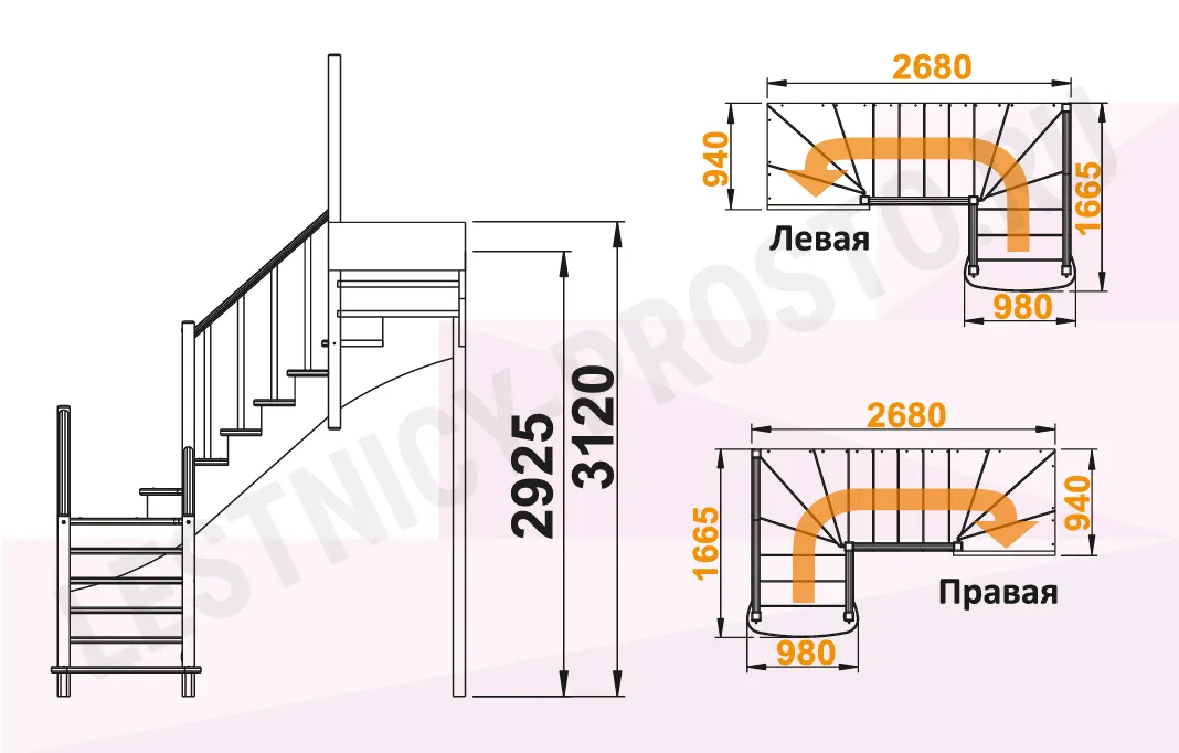 Классическая модель с забежными ступенями дает возможность произвести установку лестницы на ограниченном пространстве, несмотря на ее стандартный размер. Мобильность размещения и современный дизайн заслуженно можно считать преимущественными отличиями этой модели.