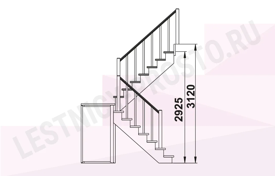 Базовый комплект включает в себя элементы лестницы и ограждения без какого-либо покрытия.