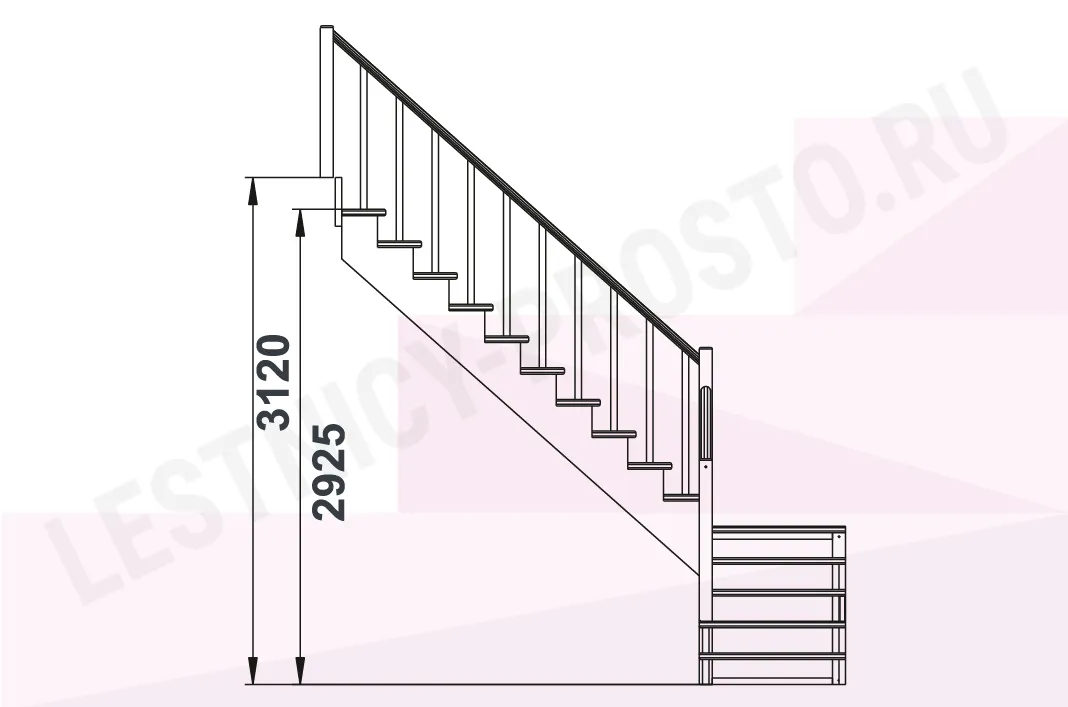 Лестница дополнительно может быть укомплектована подступенками из сосны или дуба (покупаются отдельно)