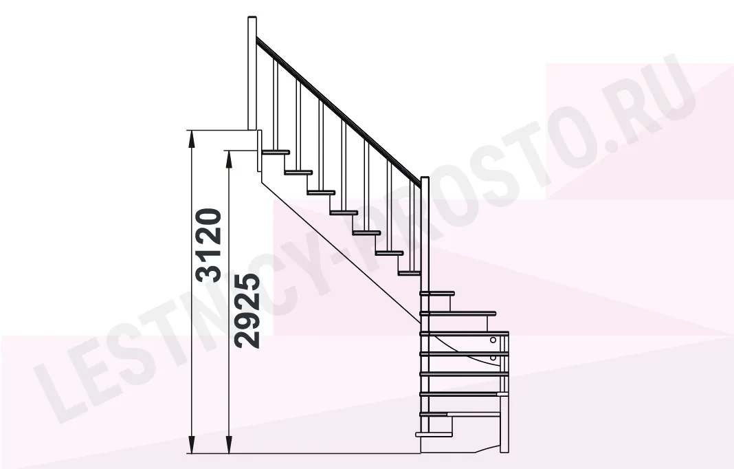 Базовый комплект включает в себя деревянные элементы лестницы и ограждения без какого-либо покрытия.