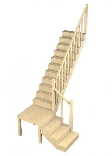 Базовый комплект включает в себя деревянные элементы лестницы и ограждения без какого-либо покрытия.