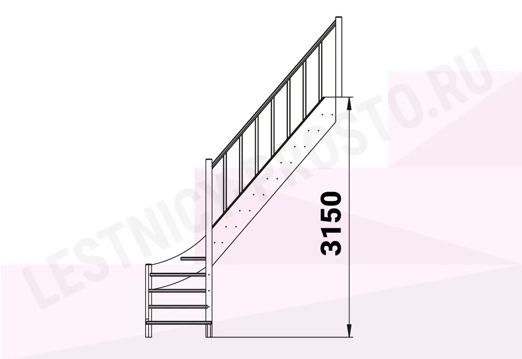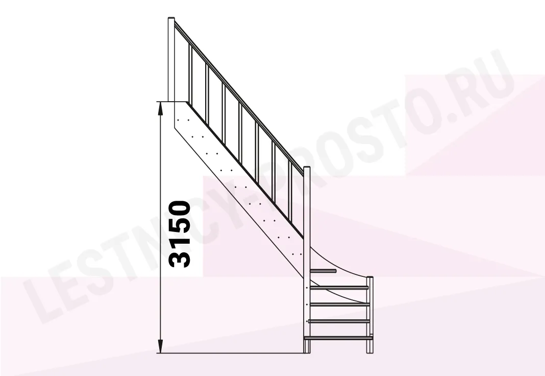 Базовый комплект включает в себя деревянные элементы лестницы с подступёнками и ограждения без какого-либо покрытия.