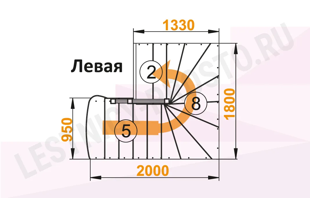 Схема лестницы К-003М/3 с поворотом налево