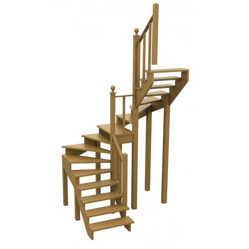 Ступени и поручень лестницы изготовлены из ясеня, остальные элементы из сосны.