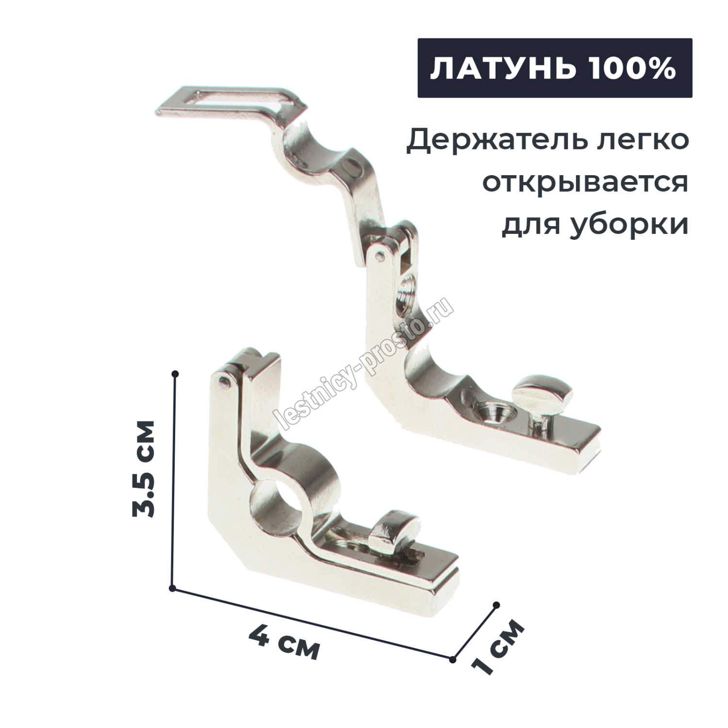 Ковродержатель PROSTO из латуни с прутком из нержавеющей стали, 100 см, серебро