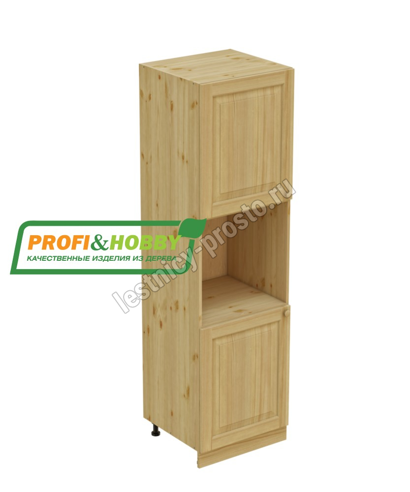Шкаф высокий (пенал) изготовлен из 100% массива дерева, без шпона и без МДФ/ДСП.