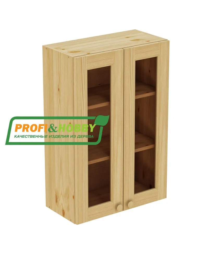 Шкаф навесной 600 х 300 х 900 под стекло, сосна, бесцветный акриловый лак