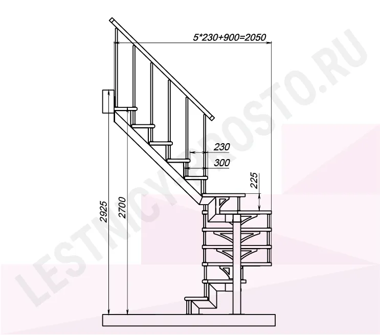 Высота лестницы 2700 - 2925 (12 ступеней) мм