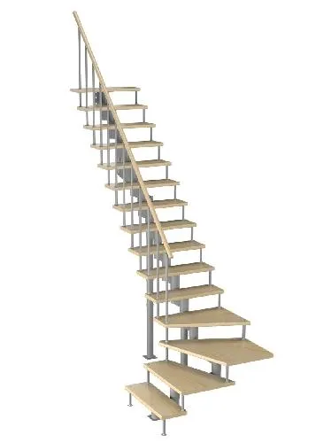 Конструкция представляет собой стальной монокосоур, на который крепятся ступени из выбранной породы дерева.