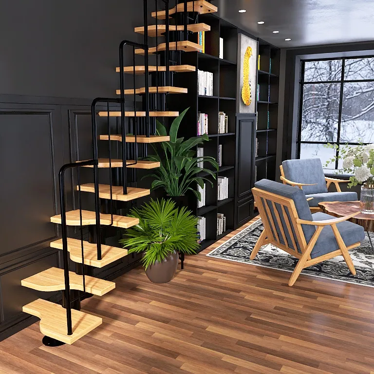 Лестница Prosto Urban Black гусиный шаг 600 мм, h198-288 см (11 ступеней), дуб