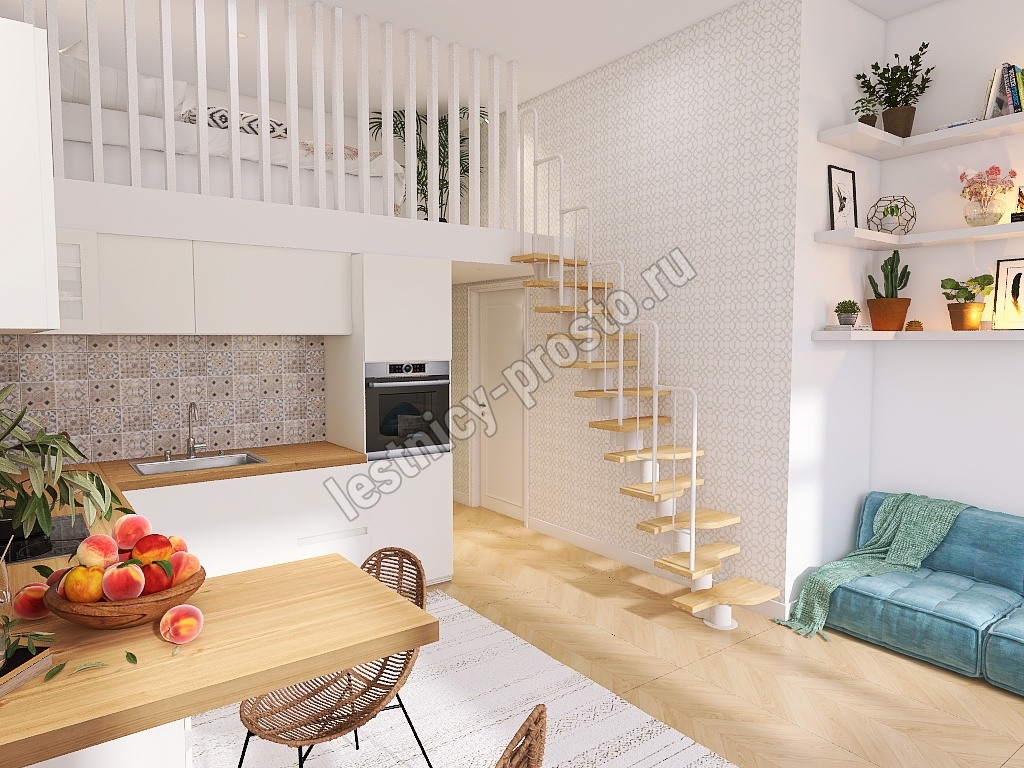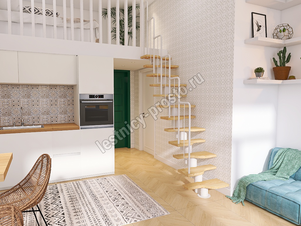 Лестница Prosto Urban White гусиный шаг 600 мм, h180-264 см (10 ступеней), дуб