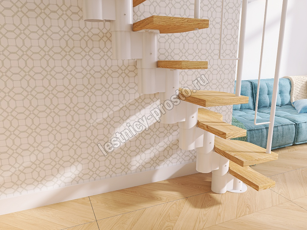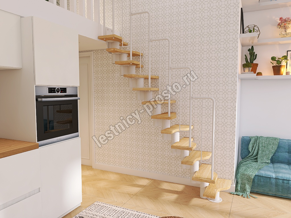 Лестница Prosto Urban White гусиный шаг 600 мм, h216-312 см (12 ступеней), дуб