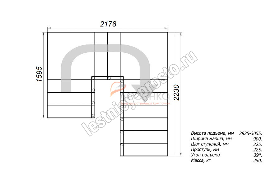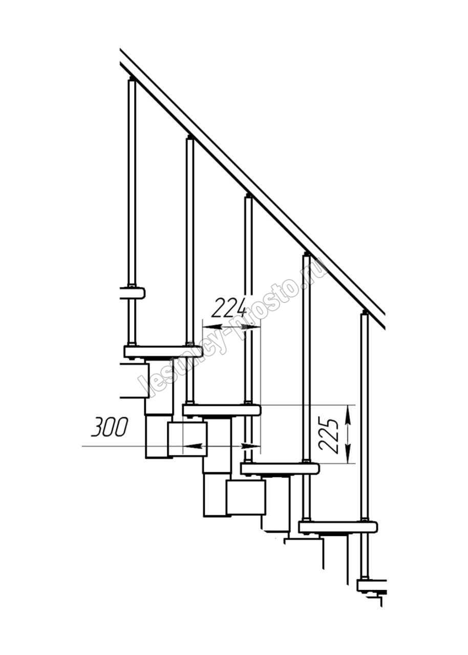 Модульная лестница Комфорт 225 2925-3055, Черный, Сосна, Крашеная