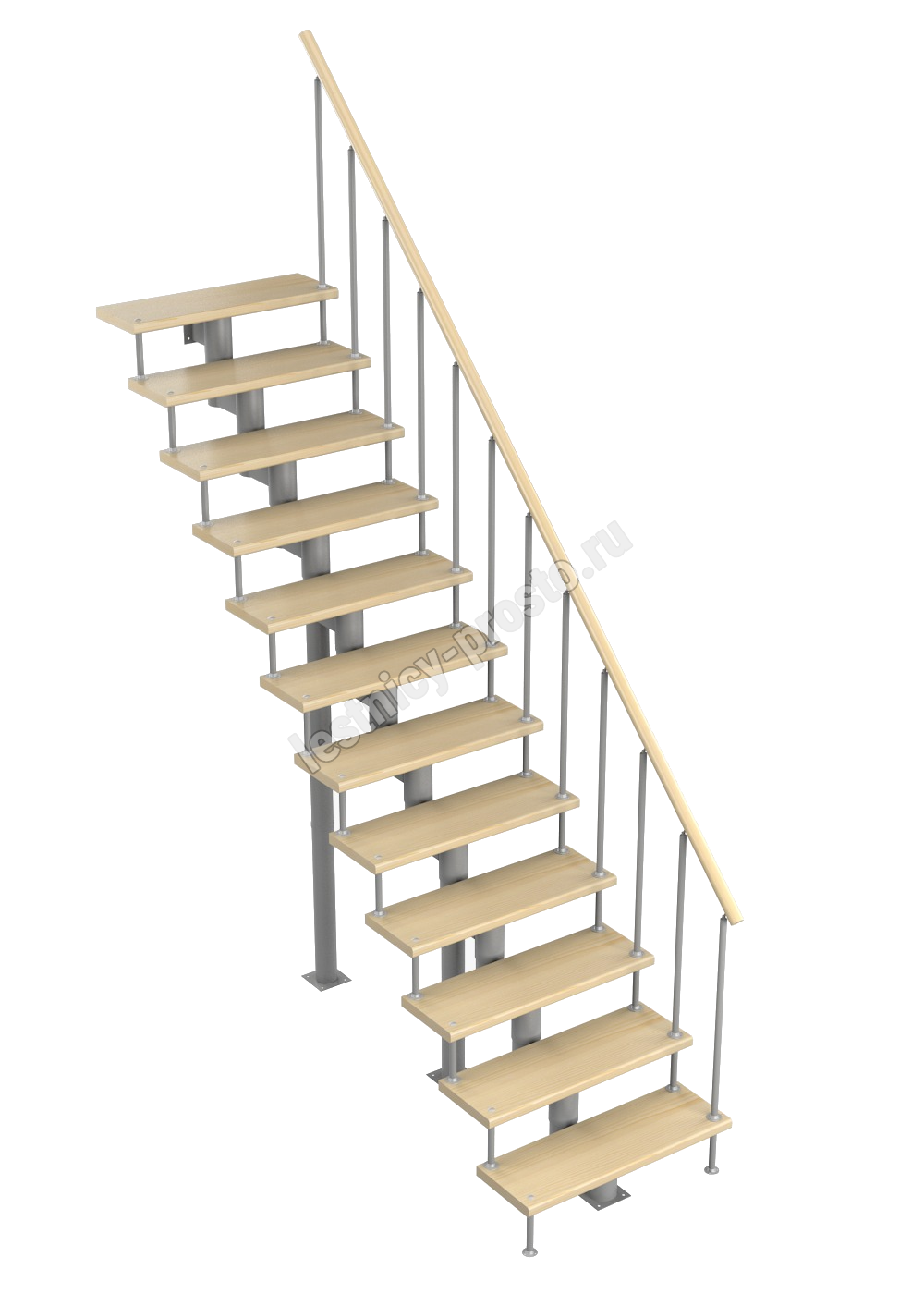 Модульная лестница Стандарт 2700-2820, Серый, Сосна, Крашеная