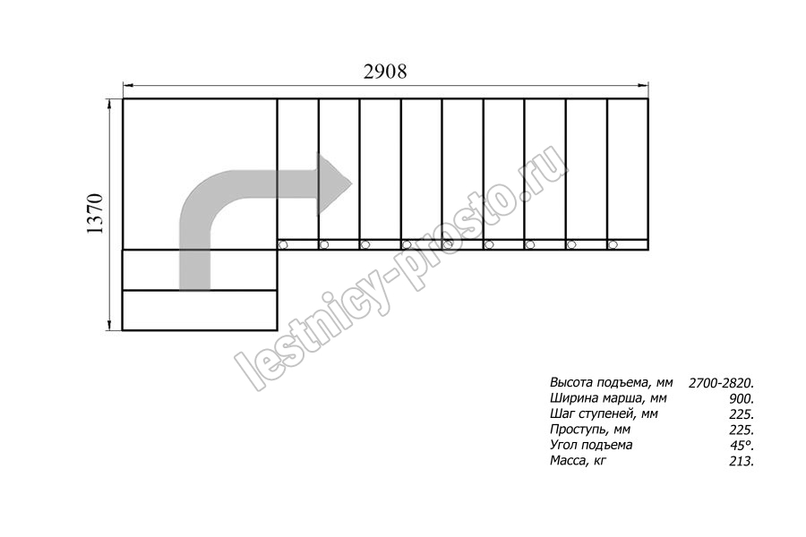 Модульная лестница Статус 225 2700-2820, Черный, Сосна, Крашеная, Без Ступений