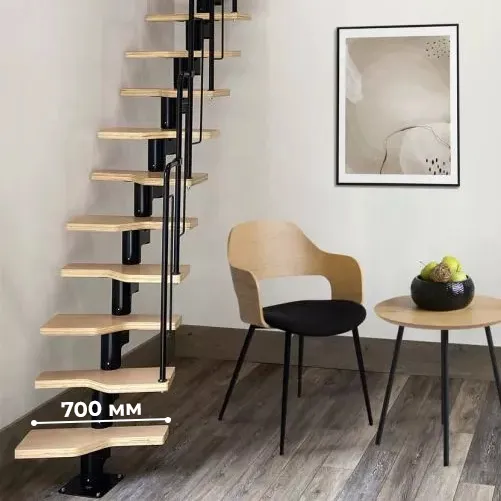 Модульная малогабаритная лестница Линия 2925-3150, Черный, Лиственница, Нержавеющая сталь