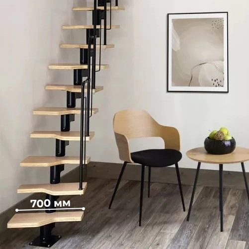 Kloè создается путем сочетания цветов стали, черного (RAL 9017), белого (RAL 9010) или серого (RAL 9006) со светлыми (натуральными) или темными тонированными ступенями из бука.
