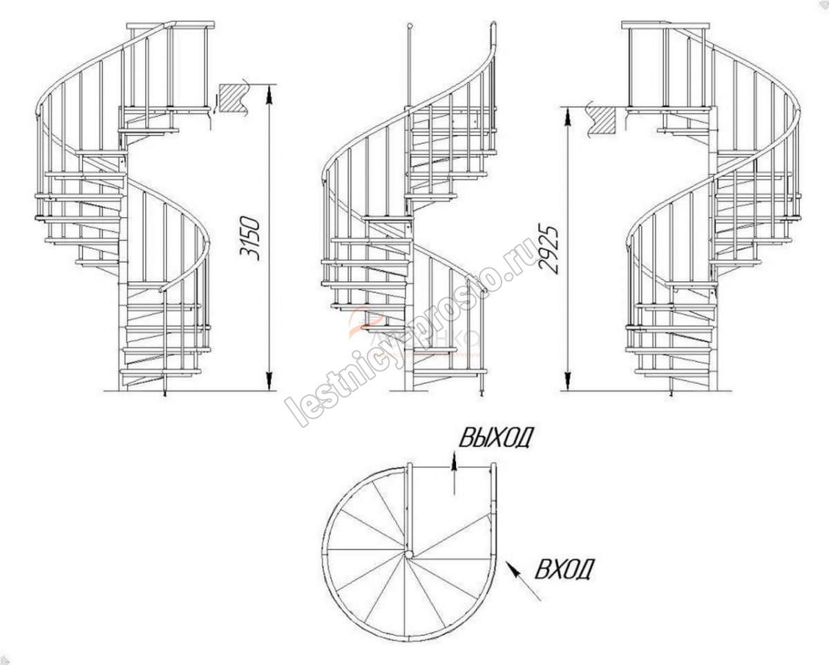 Винтовая лестница ЛЕС-1,8 высота 2925-3150, Серый, Бук