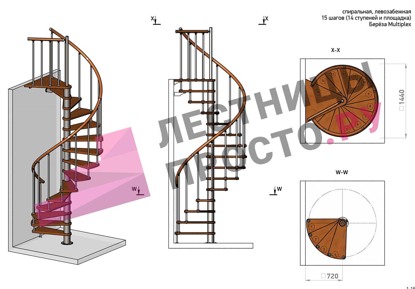 Винтовая лестница Prosto Spiral Black D160см, h254.5-289.8 см