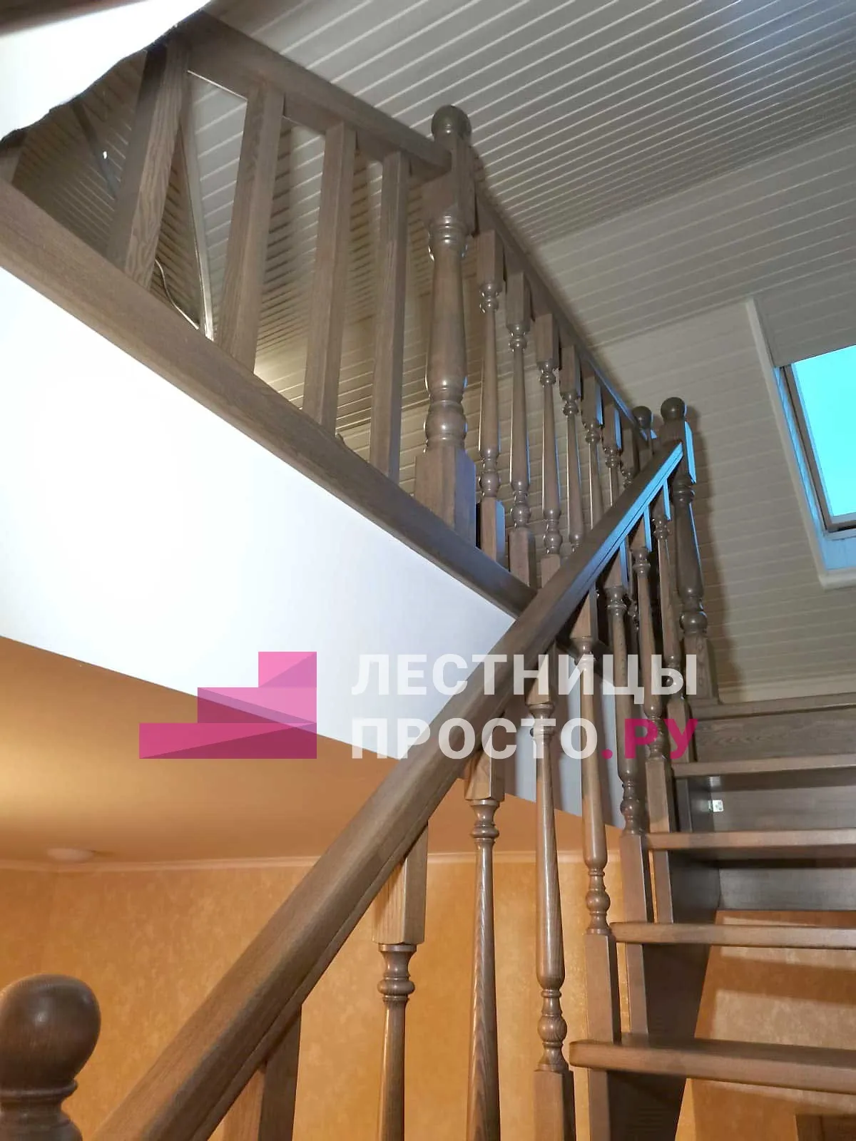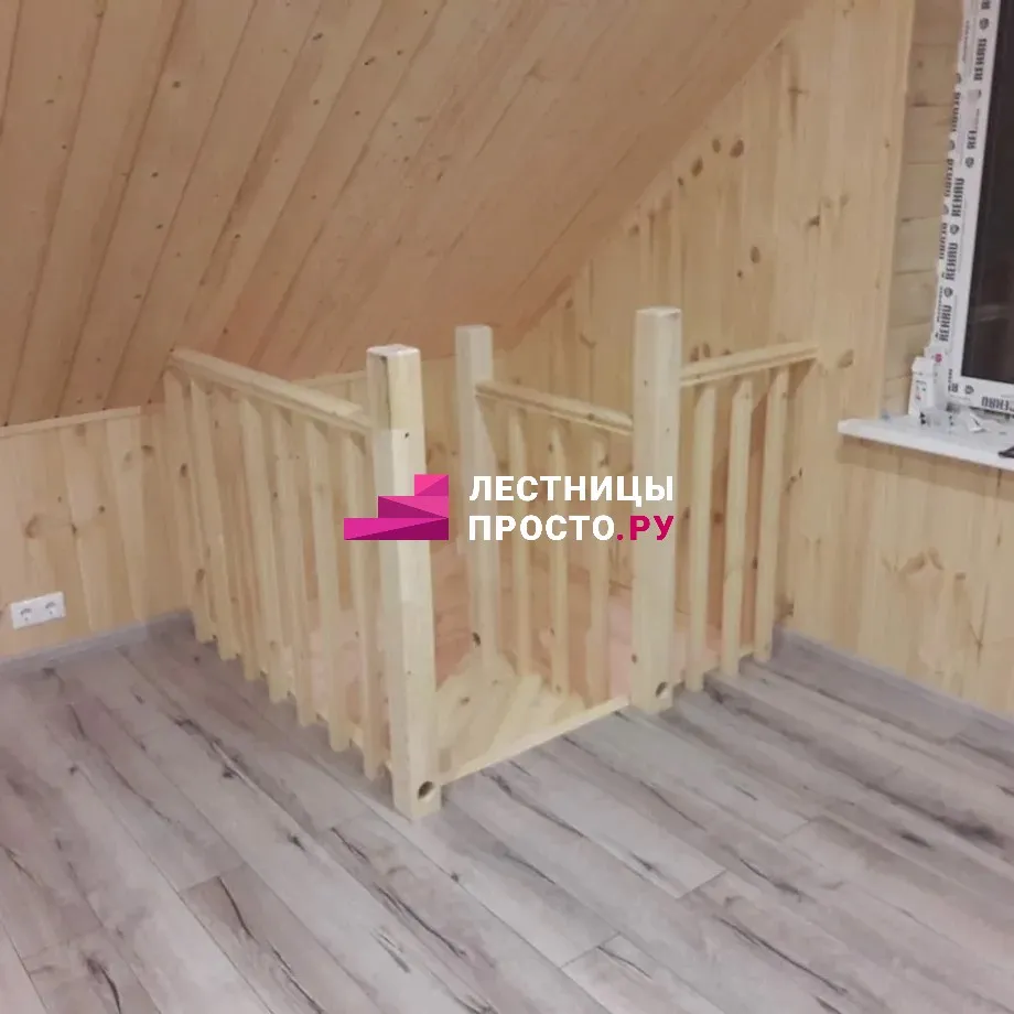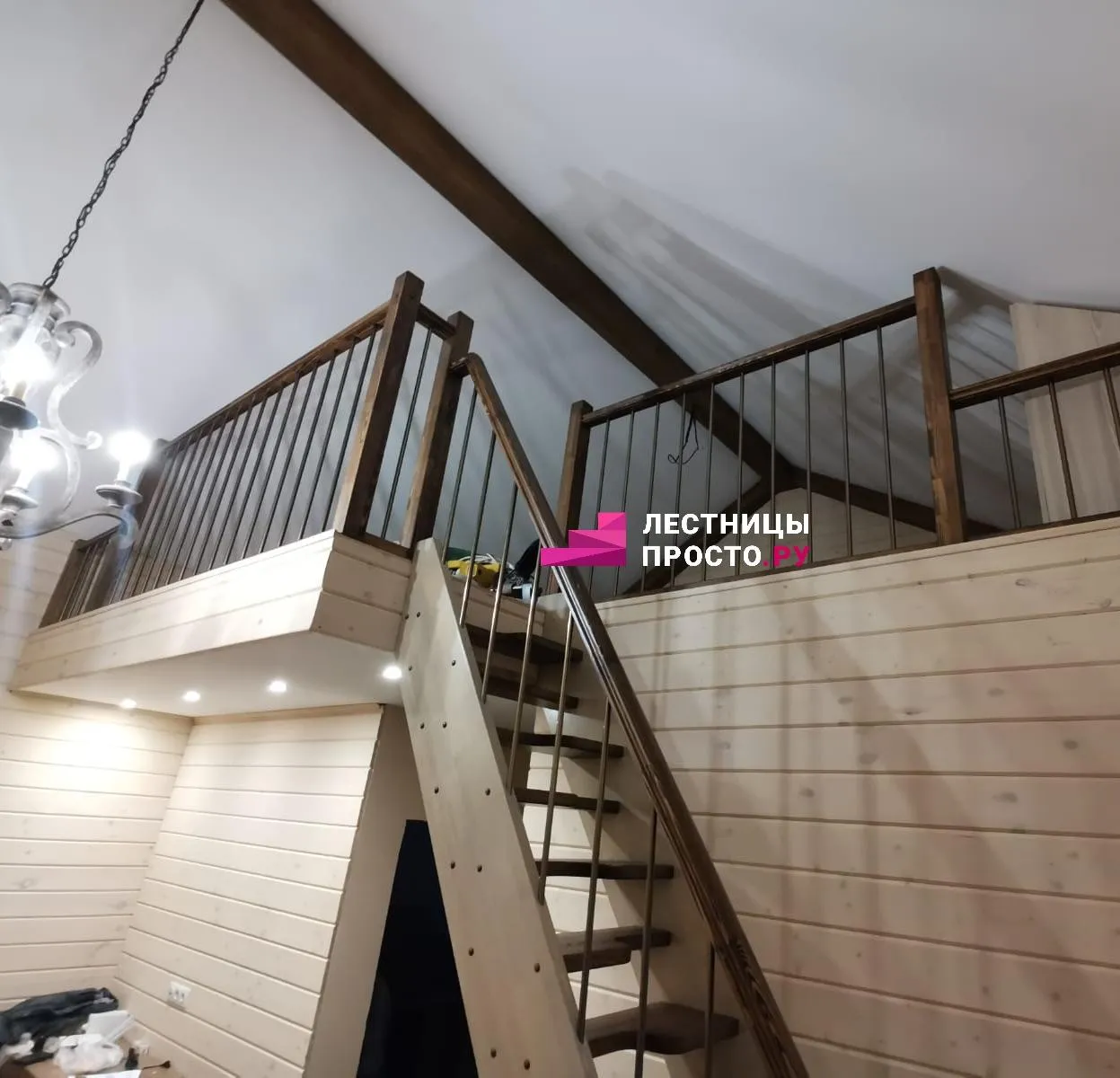 Лестница LP из сосны на второй этаж с поворотом на 180 градусов