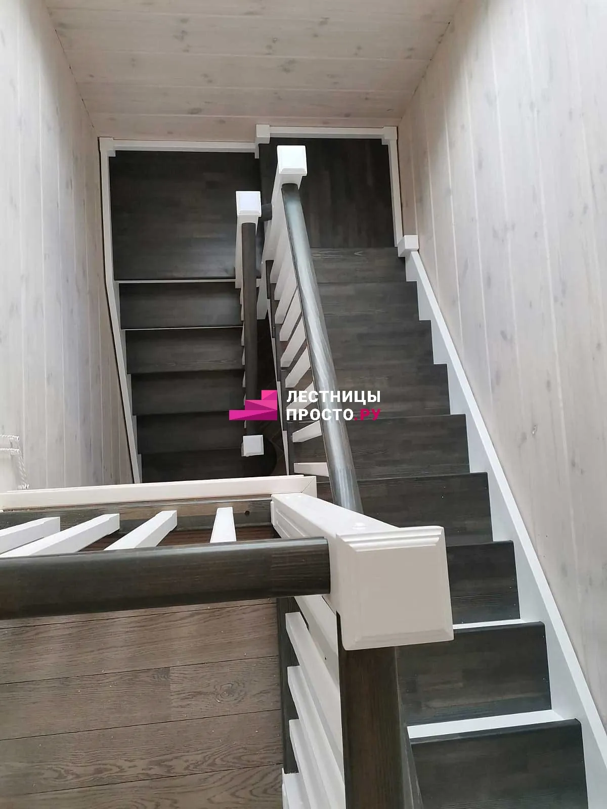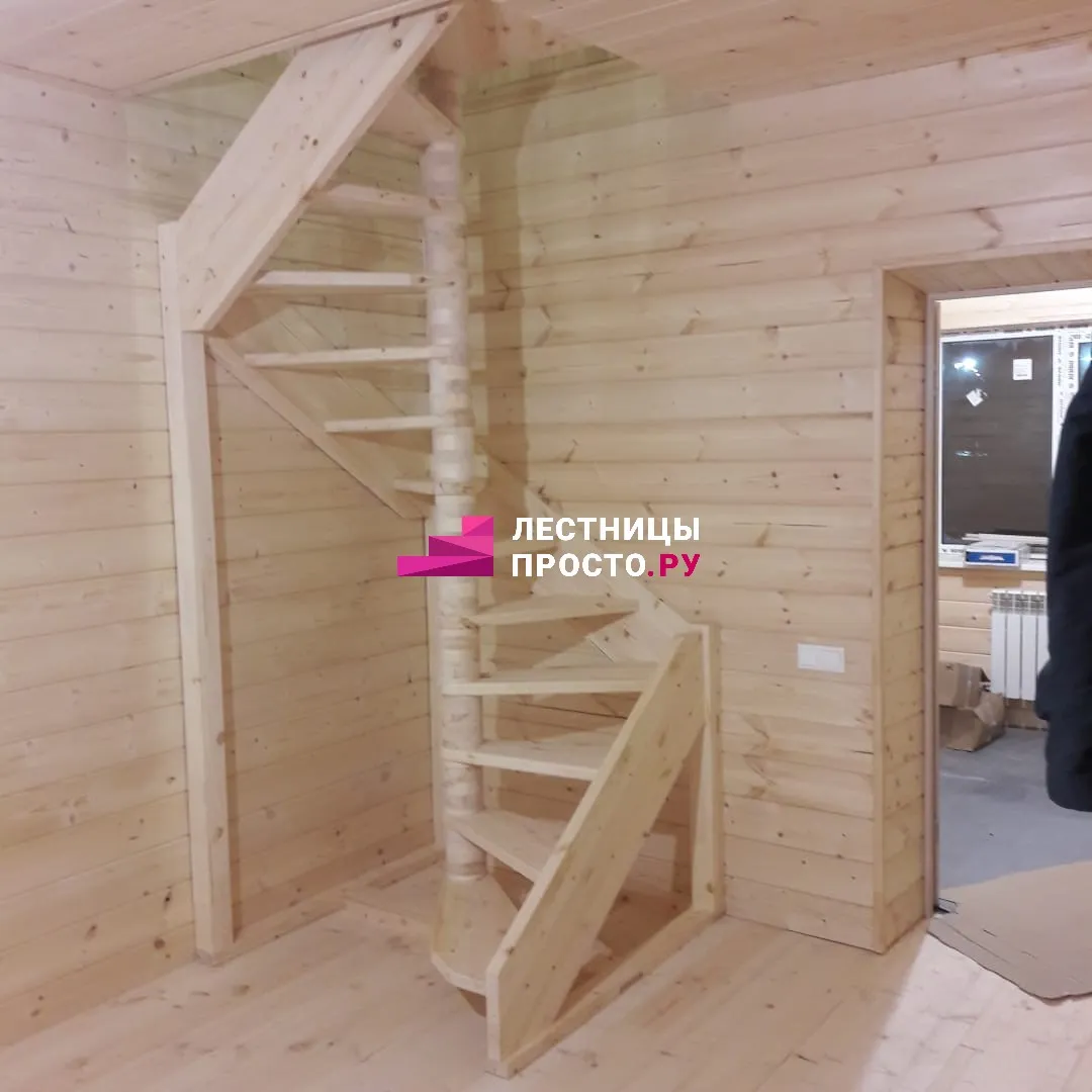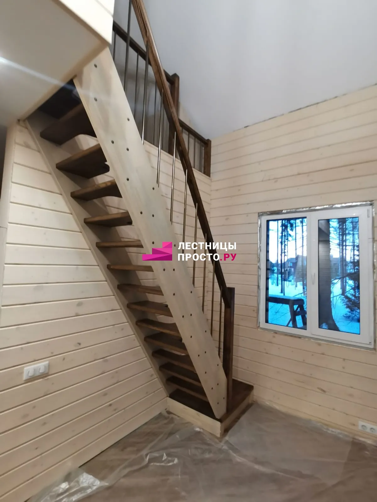 Лестница LP из сосны на второй этаж с поворотом на 180 градусов