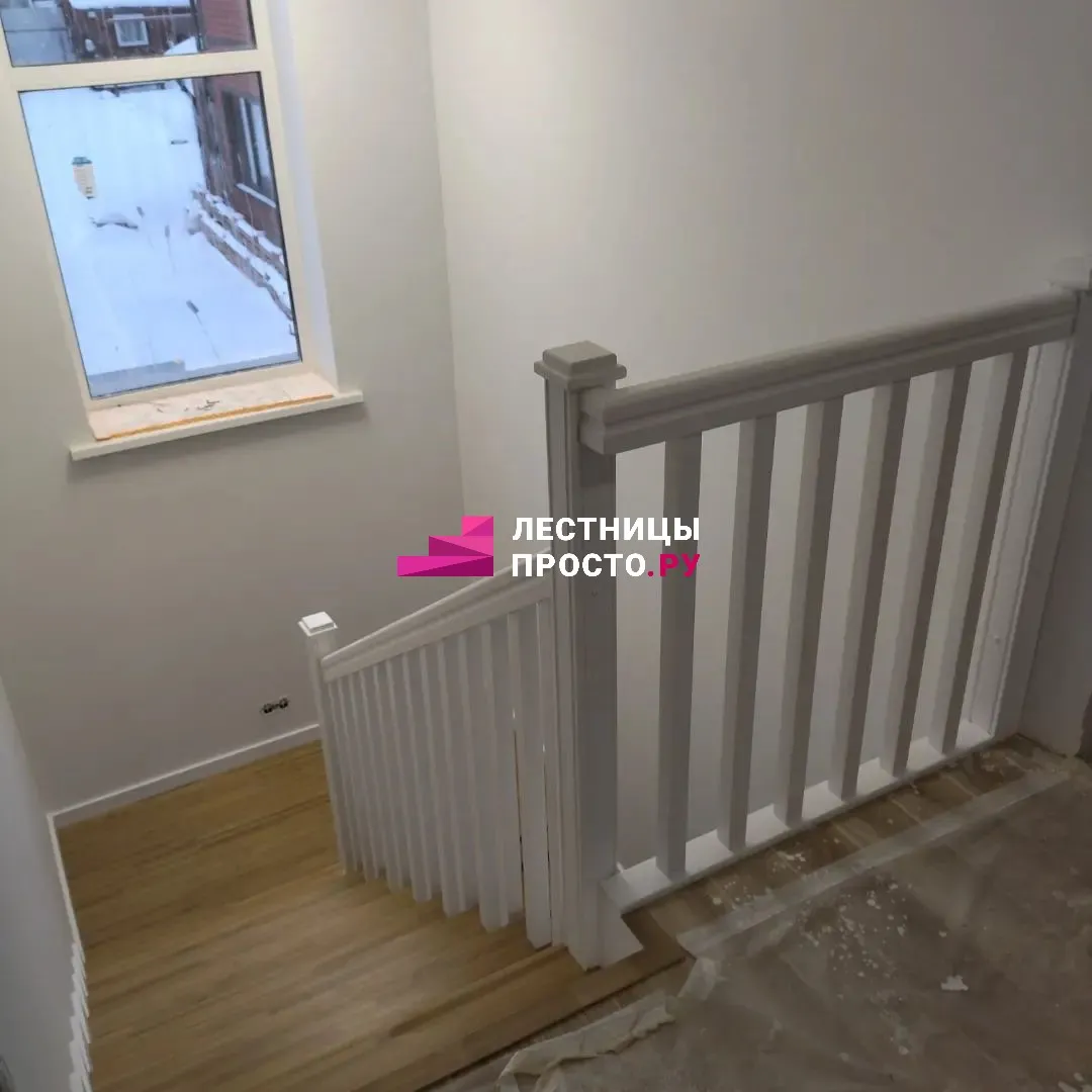 Подступенники, фальш-косоуры, сапожки (пристенной плинтус) декорированы МДФ.